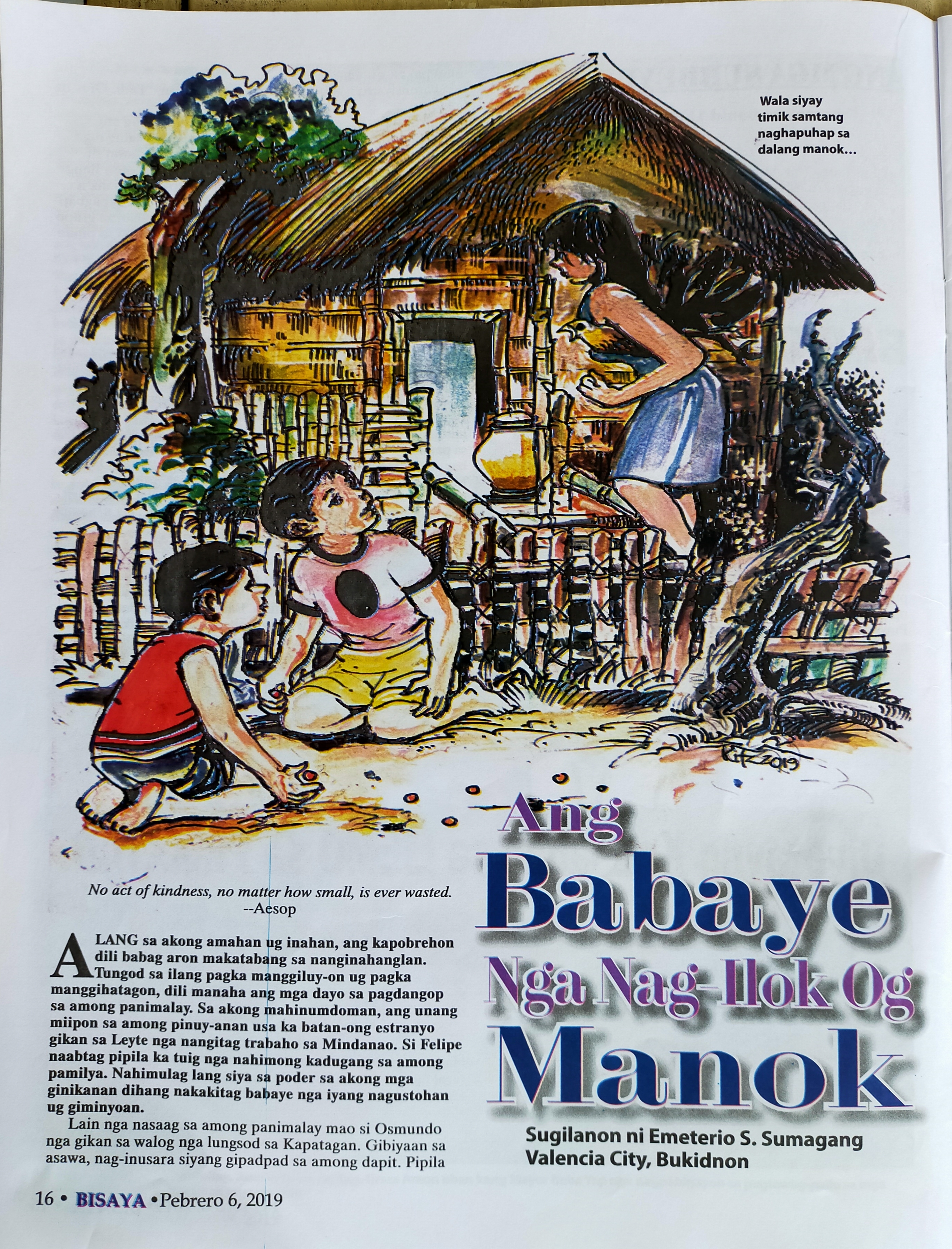 Alang sa akong amahan ug inahan, ang kapobrehon dili babag aron makatabang sa nanginahanglan. Tungod sa ilang pagka manggiluy-on ug pagka manggihatagon, dili manaha ang mga dayo sa pagdangop sa among panimalay. Sa akong mahinumdoman, ang unang miipon sa among pinuy-anan usa ka batan-ong estranyo gikan sa Leyte nga nangitag trabaho sa Mindanao. Si Felipe naabtag pipila ka tuig nga nahimong kadugang sa among pamilya. Nahimulag lang siya sa poder sa akong ginikanan dihang nakakitag babaye nga iyang nagustohan ug giminyoan.