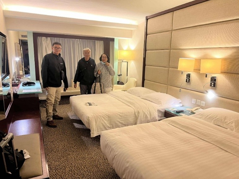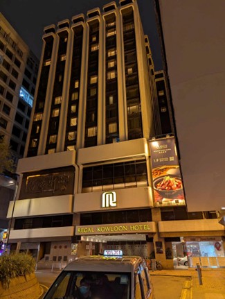 Gikan sa erport, misakay mig taxi paingon sa Regal Kowloon Hotel diin naka-online booking si Yong. P46,922 ang bayad sulod sa lima ka adlaw. Edaran na ang drayber sa taksi apan kusog kining mipadagan sa one-way- two-lane nga mga dalan. HK$ 300 (P2,210.00) ang nabayad ni Yong sa taksi. Mga 32 kilometros ang distansiya sa erport ug sa Regal Kowloon Hotel nga nahimutang sa 71 Mody Road, Tsim Sha Tsui East, Kowloon.