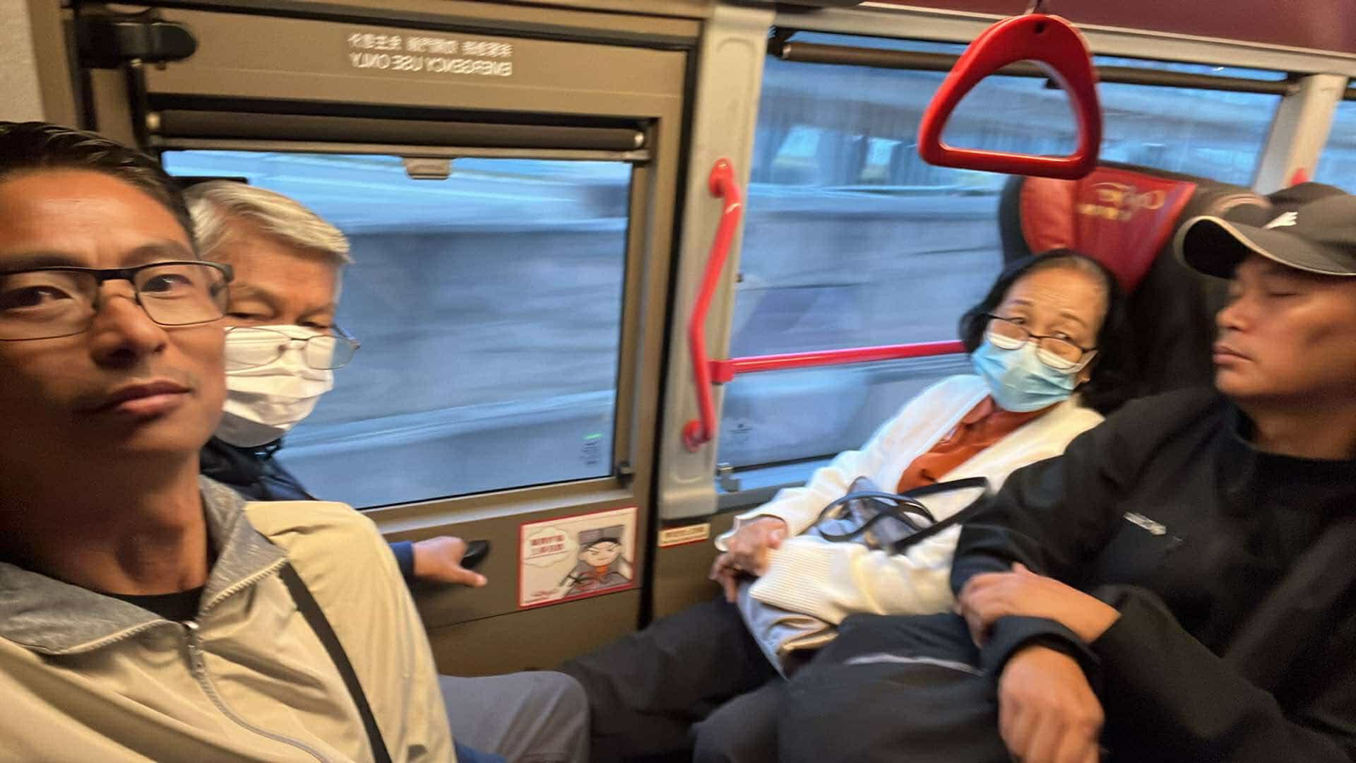 Hulagway 12. Si Yong, Eme, Pat ug Emem sulod sa bus paingon sa Kong Kong Port.