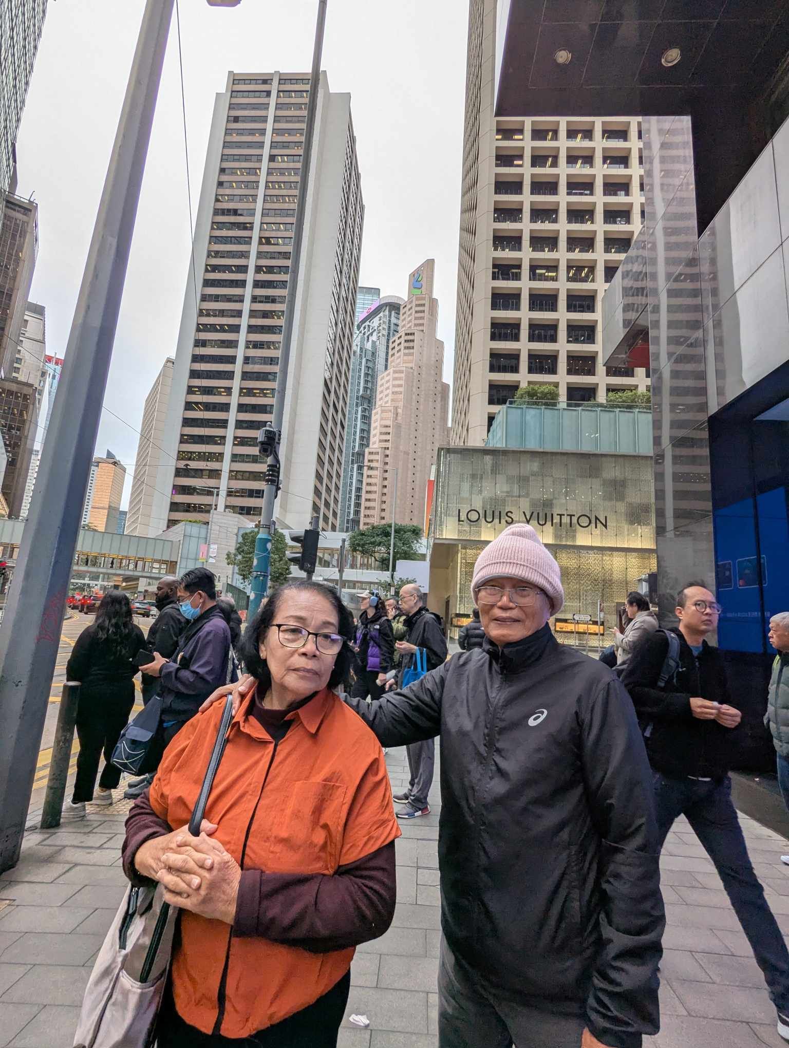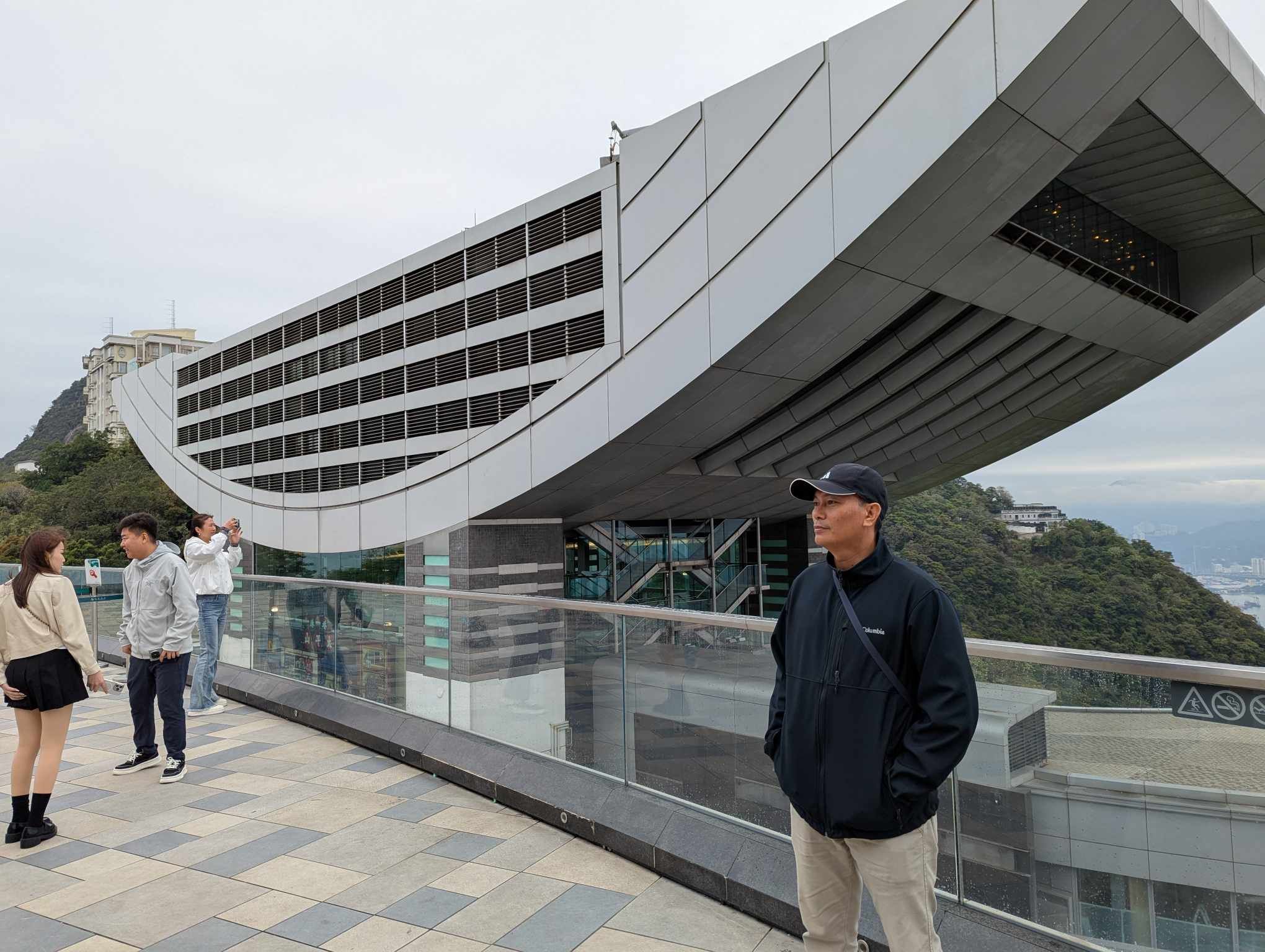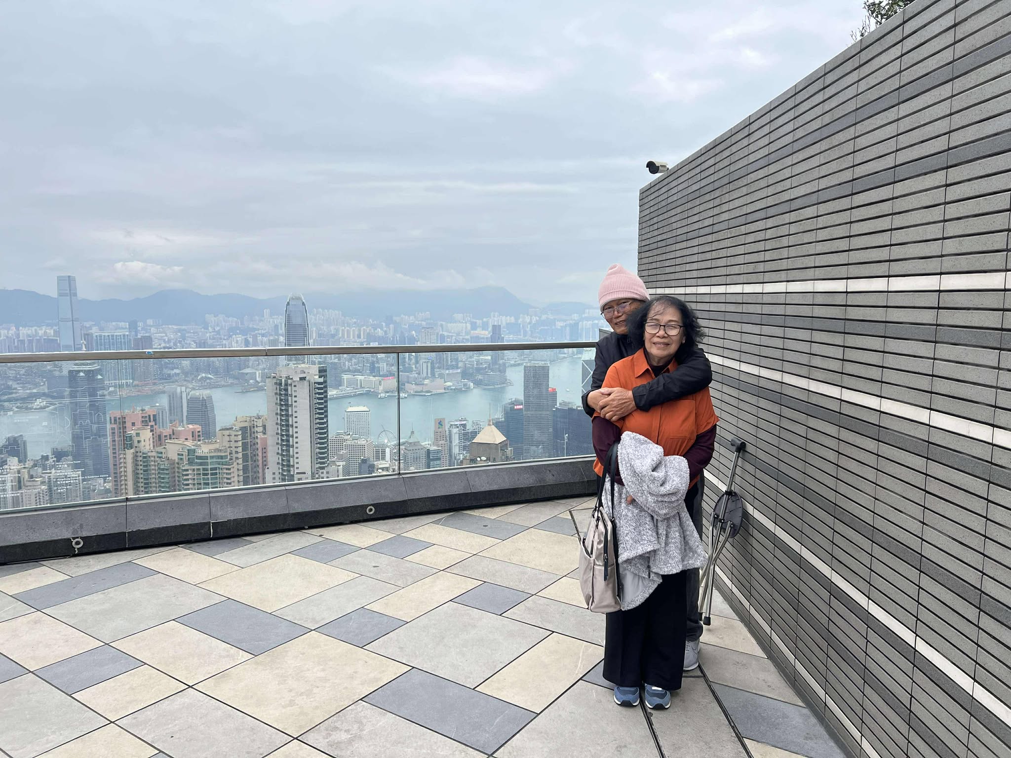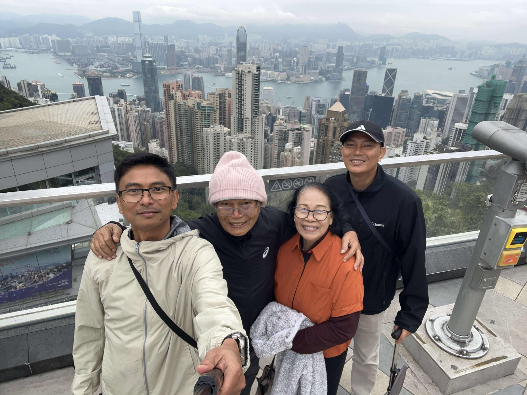 Ang Sky Terrace 428, nga nagtindog 428 metro gikan sa lebel sa dagat mao ang pinakahabog nga lantawanan sa Hong Kong. Una ming miadto sa terasa aron paglantaw sa mga maanindot nga mga talan-awon sa palibot nga gihimong bakgrawon sa among pagpahulagway. Giliminan og nipis nga gabon ang taluktok nga nakadugang sa katugnaw sa dapit. Sa akboanan sa terasa, among madung-aw ang tag-as nga mga bilding sa ubos ug malantaw ang Victoria Harbour sa unahan. Wala mi mosaka sa Peak Tower nga kasikbit sa terasa kay sawanon si Pat sa kahabog. Hinuon, dali ming misulod sa Peak Galleria kay gikuray ming Pat sa katugnaw sa gawas.